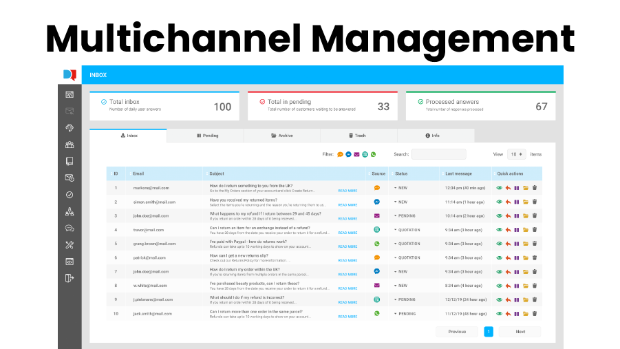 With this system you simplify requirement's manage maximizing the time. you simplify the management of requests by optimizing times. You can easily analyse customer's demands without confusion on every channels he used.
